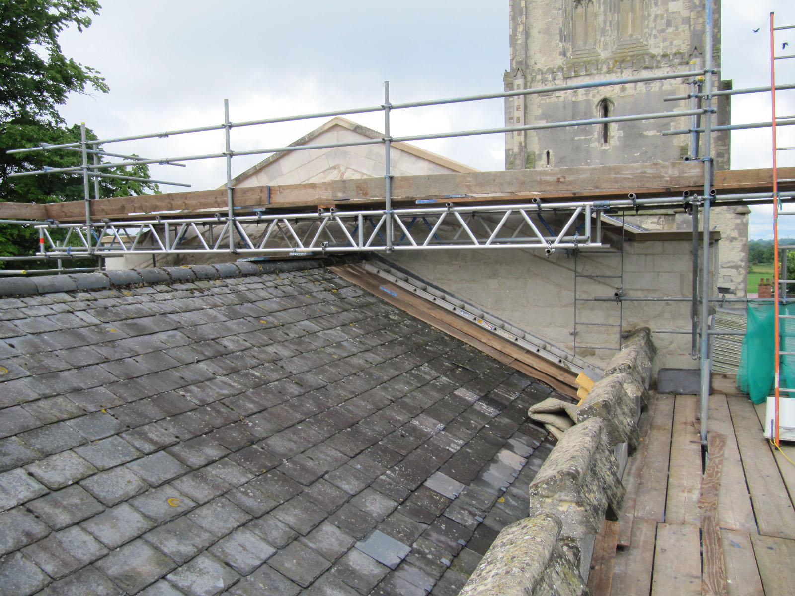 The main purpose of these works was to make the building more watertight and to improve the drainage away from the structure, concentrating mainly on the south side of the church. The repairs to the Nave East Gable were however quite extensive (above and below).